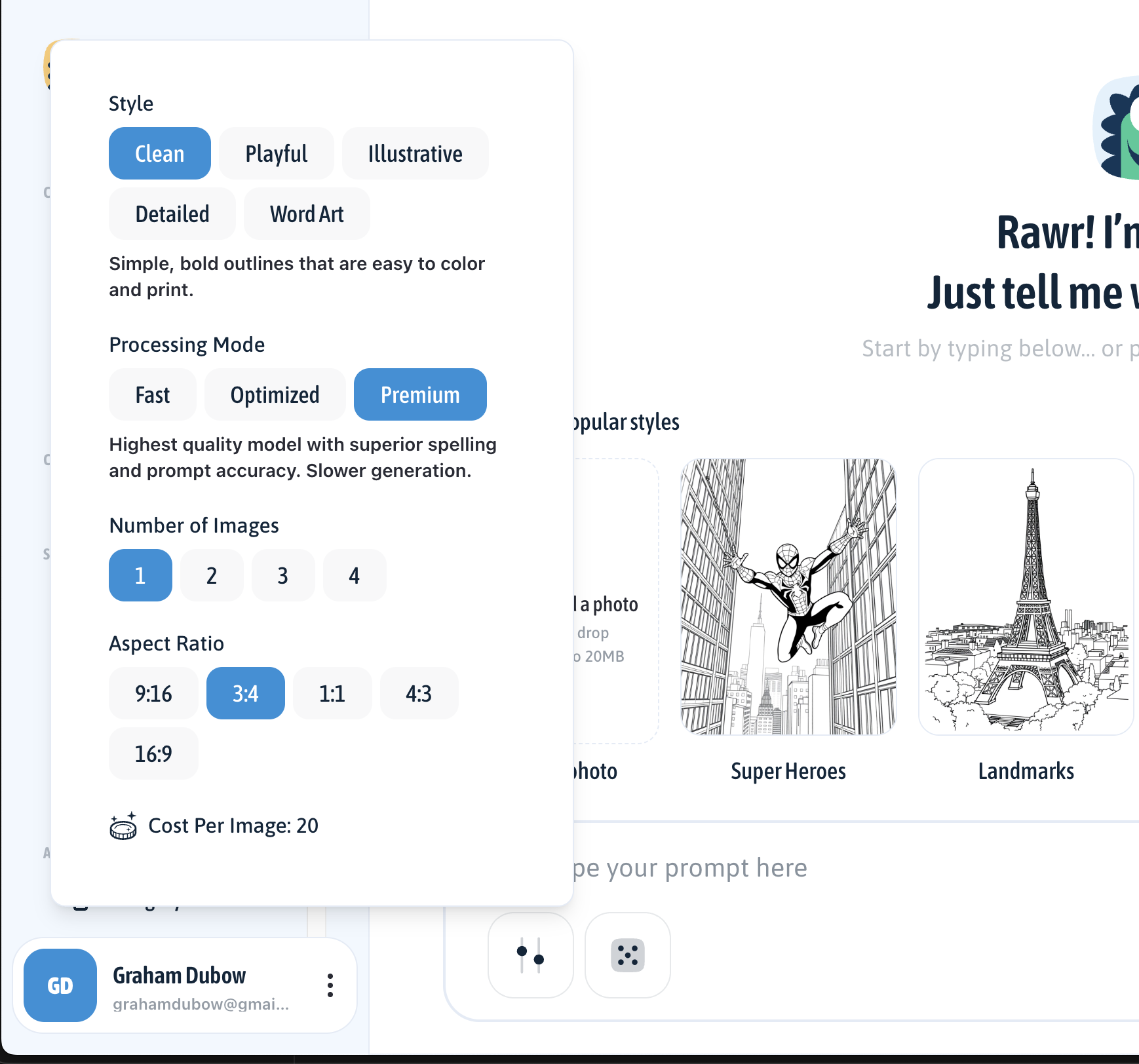 Before you create your art, donβt forget to choose the Model and aspect ratio by clicking the settings icon under the text bar. This makes it super easy to print perfectly in any kind of paper.